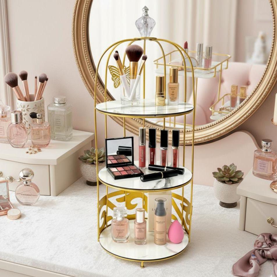 3 Layers Luxury Design Free Standing Shelf Makeup Organizer